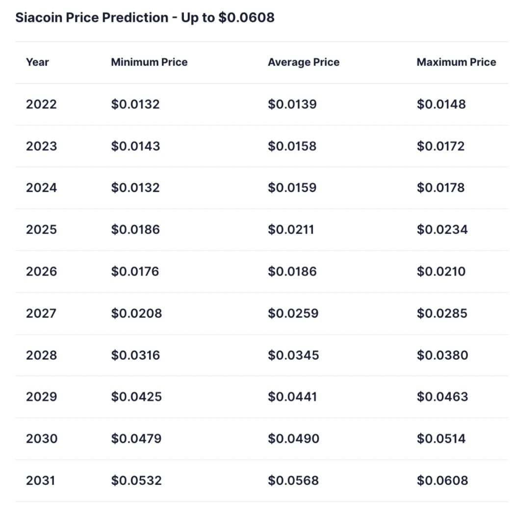 Quelles sont les prédictions de la crypto Siacoin ?