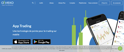 Pour télécharger l’application mobile, vous pouvez vous rendre sur le site officiel d’Alvexo, puis sur “Plateformes” et “Application mobile”. Vous n’aurez plus qu’à choisir “Apple Store” ou “Google Play”.