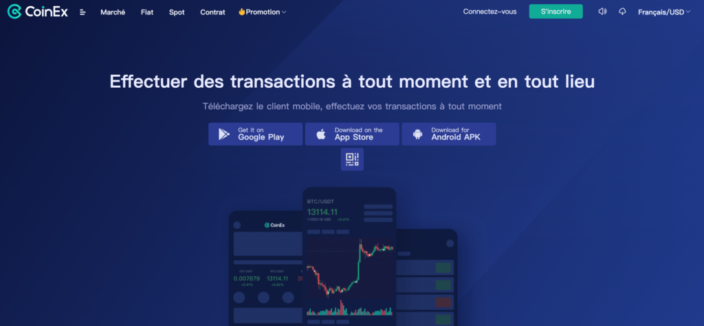 Comme les meilleurs brokers, CoinEx offre une application mobile permettant de mener ses activités à partir de son smartphone ou de sa tablette. Une option qui devient incontournable dans un contexte marqué par l’explosion des technologies numériques. Cette application est disponible sur Android APK, App Store et Google Play.