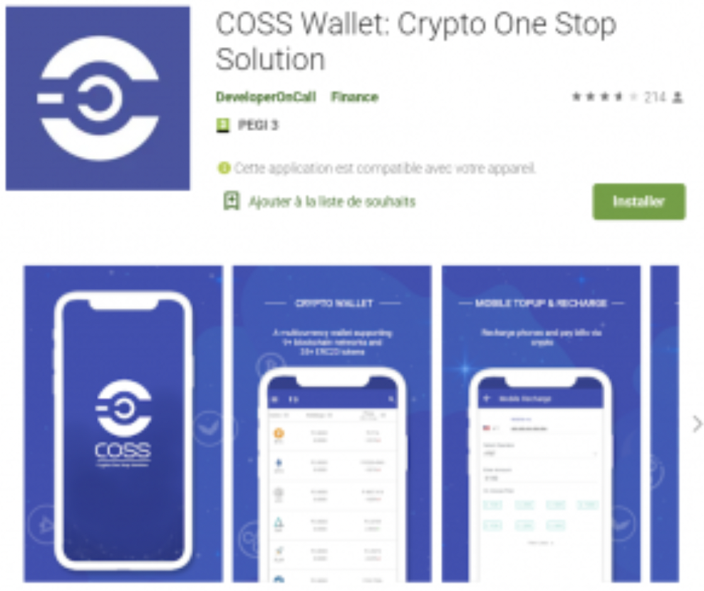 Il est possible de télécharger le portefeuille sur les espaces App Store et Play Store, ceci depuis que le Coss Wallet a été créé pour remplacer Arax Crypto.