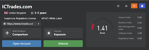 ICTrades.com n’est pas un broker fiable, car n’est régulé par aucune autorité compétente. De plus, après une analyse minutieuse, les informations sur ses activités semblent erronées.