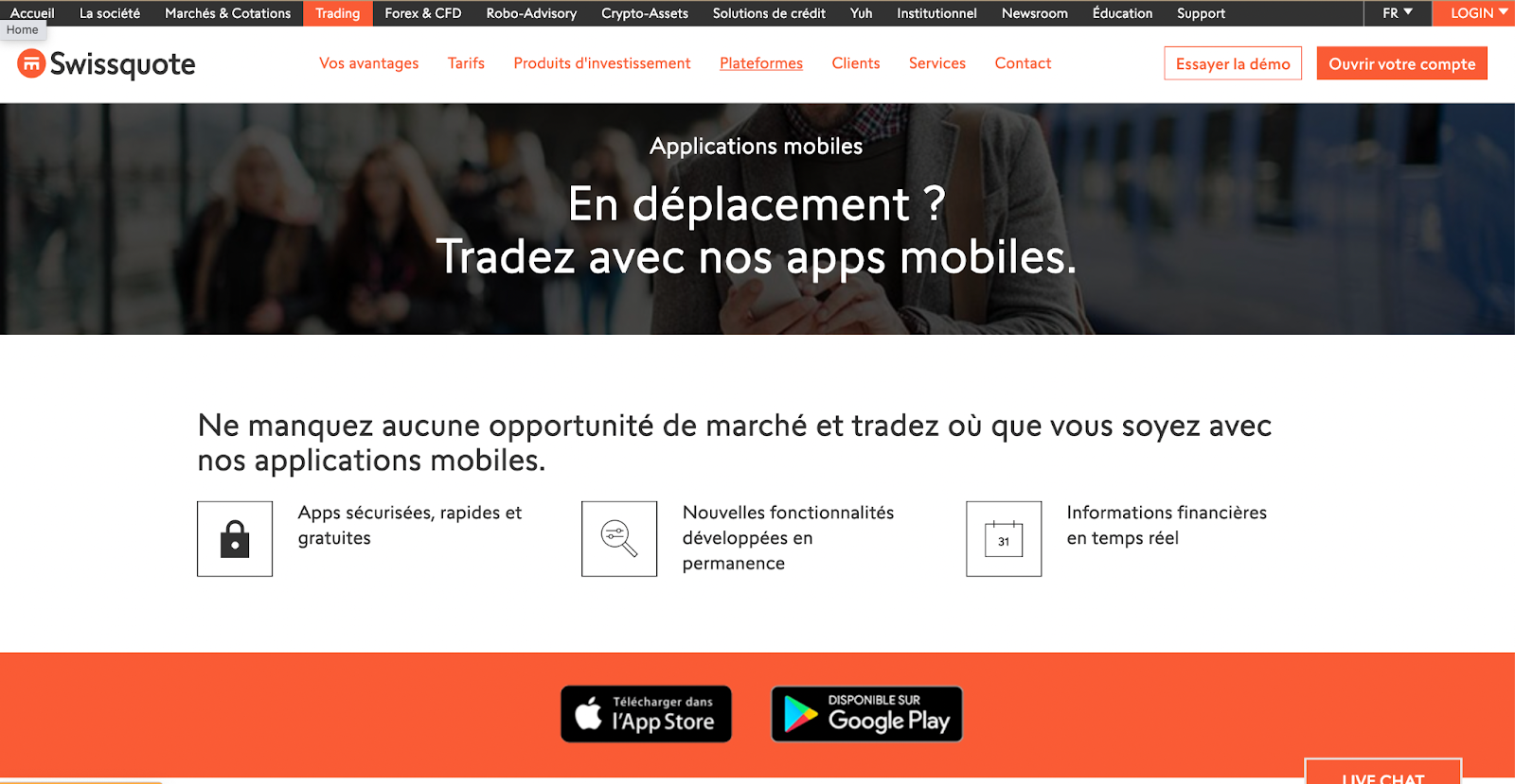 | Etape n°1 | Se rendre sur le site officiel de Swissquote et cliquer sur le bouton “Commencez à trader”, |