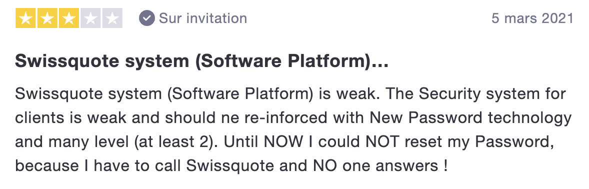 Ce deuxième témoignage vient mettre le doigt sur une faille bien importante : la sécurité. Bien que Swissquote soit relativement bien sécurisé et régulé, cela pourrait être davantage amélioré par une sécurité de connexion plus importante. Il témoigne aussi de la faiblesse du service client lorsqu’il s’agit de demandes bien spécifiques et tardent à répondre à leurs clients. Dommage !