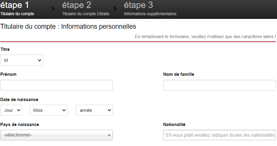 - Remplissez le formulaire d'ouverture de compte avec vos informations personnelles.