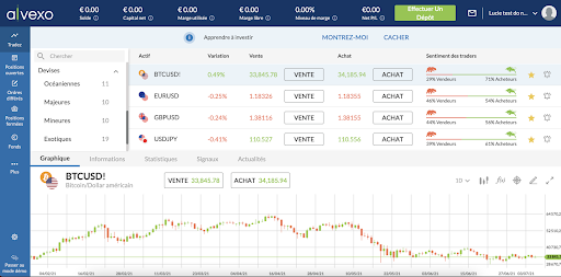 Notons tout de même que Alvexo donne accès à un compte démo pour tous les traders, quel que soit leur niveau. Le compte démo vous crédite virtuellement 50 000 euros avec lequel vous pouvez vous entraîner et tester la plateforme de trading avant de vous engager financièrement. Il sera toujours possible de changer de compte vers un compte réel lorsque vous vous sentirez suffisamment prêt.