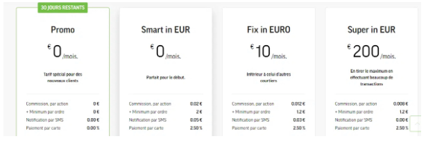 - Super quant à lui propose un forfait de 200 € /mois pour une commission par action réduite à 0,008 €.