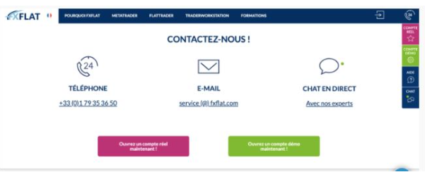 Le service d’assistance client FXFlat est disponible 24h/24h et 5j/7j. il peut être contacté :