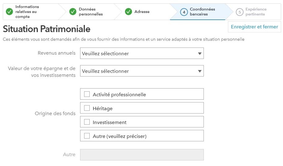 donnez les renseignements nécessaires concernant votre expérience en tant que trader.