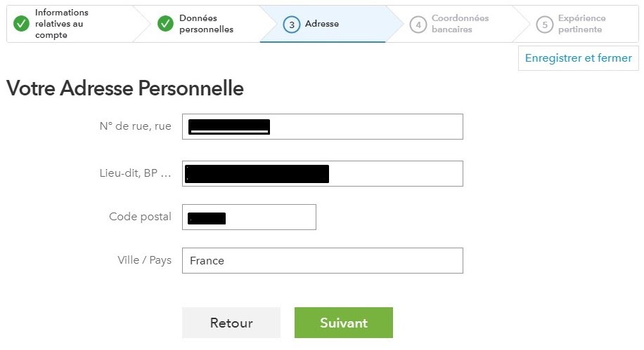 Renseignez les données requises (il s’agit des mêmes informations), mais assurez-vous de le faire sous la case « particulier ». Validez en cliquant sur l’onglet « Créer un compte ». |