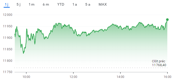 Depuis novembre 2021, le cours de l’indice a suivi une tendance baissière mais remonte légèrement depuis un mois. Il est actuellement trouvé à un cours de 11452,42 points.