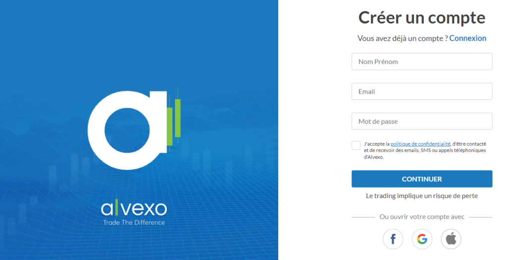 Ouvrir un compte sur la plateforme de trading Alvexo