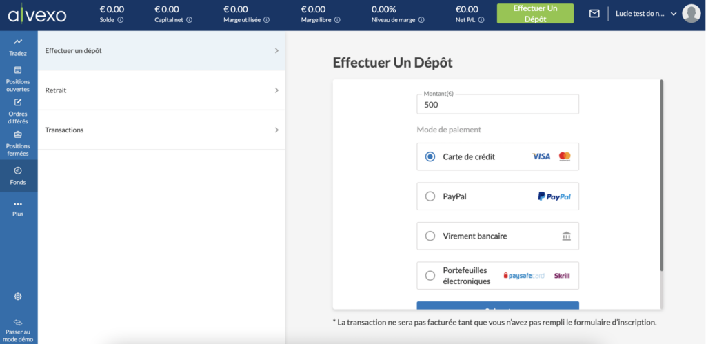 - Après vous être inscrit sur le courtier, vous pourrez réaliser votre premier dépôt.