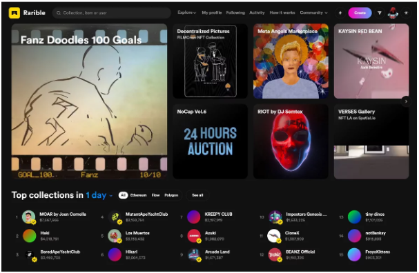 La plateforme Rarible présente une apparence et une ergonomie attrayantes. La page d’accueil propose les tendances du moment auxquelles il faut ajouter des animations pour chacune d’entre elles. Tout cela permet à Rarible de séduire davantage les utilisateurs.