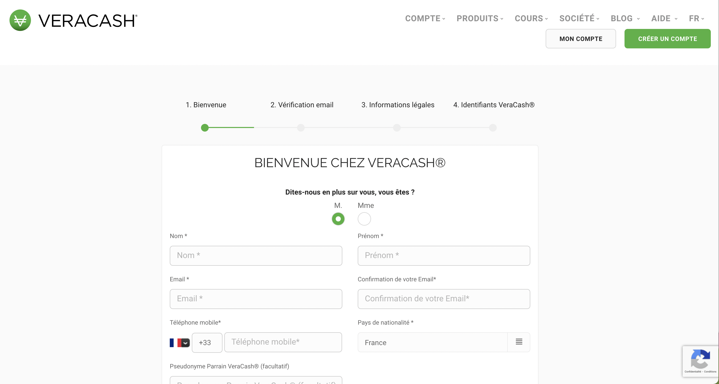 L’ouverture d’un compte sur Veracash est d’une extrême simplicité. Voici les différentes étapes à suivre.